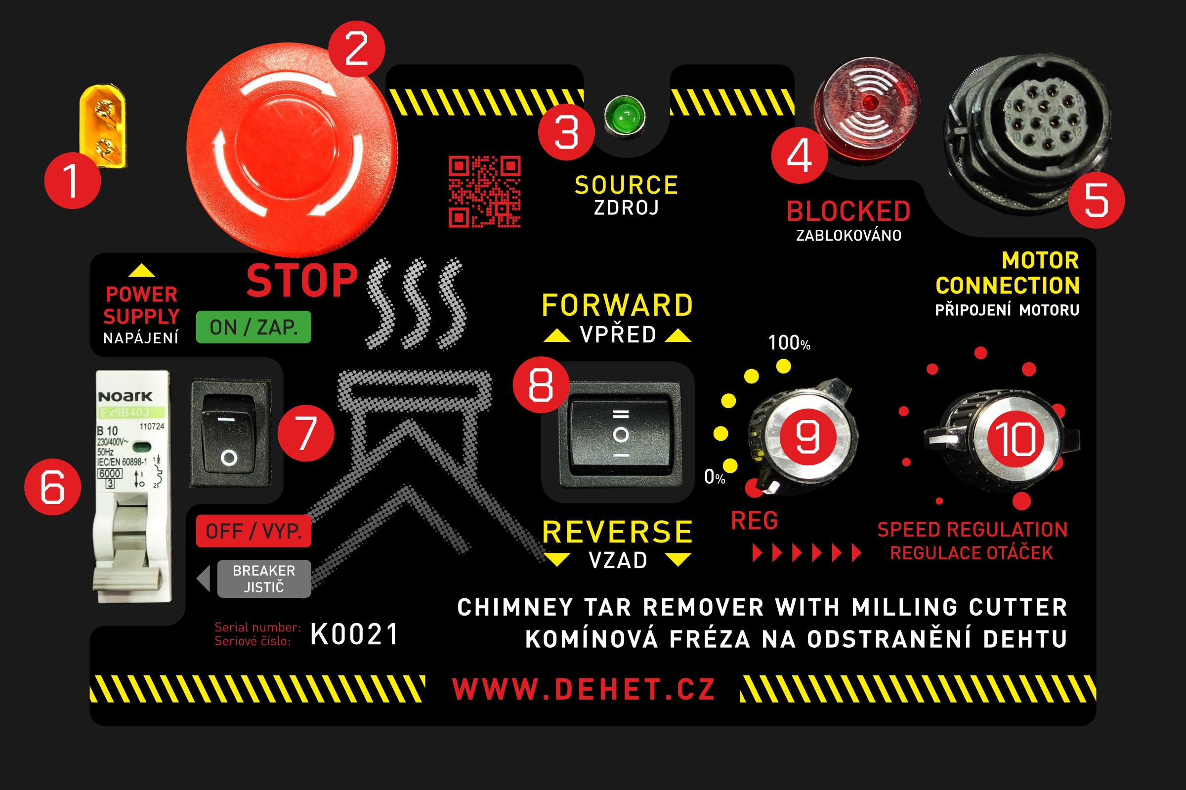 Rotační horizontální pohyb s elektrickou hnací jednotkou těsně nad pracovním nástrojem (přímo ve spalinové cestě), kterou si může kominík nastavit na řídícím panelu v rozsahu 0-1000 ot./min. si tak většinou poradí i s těmi nejodolnějšími nánosy suchého dehtu, které běžné kartáče ovládané vertikálně nezvládnou. Tímto způsobem je tak možné použít zařízení elektrické dehtové pro důkladné a bezpečné vyčištění vašeho komína.